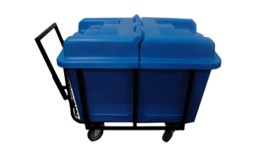 - Design Funcional: A tampa bipartida facilita o acesso ao conteúdo, reduz o esforço do operador e ajuda a manter os materiais (sejam eles insumos, roupas ou resíduos) sempre protegidos e fora de vista.