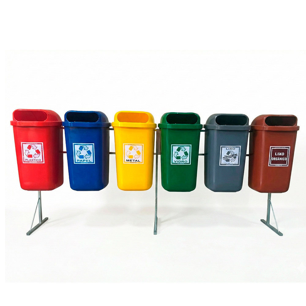 Conjunto Papeleira c/ Suporte c/ 6 Lixeiras – Coleta Seletiva