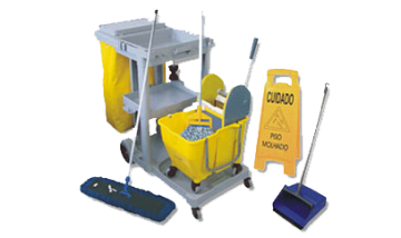 - Organização e Eficiência com o Carro Funcional: O carro funcional serve como uma estação de trabalho móvel, permitindo o transporte organizado de todos os equipamentos, produtos de limpeza e a retirada de lixo.