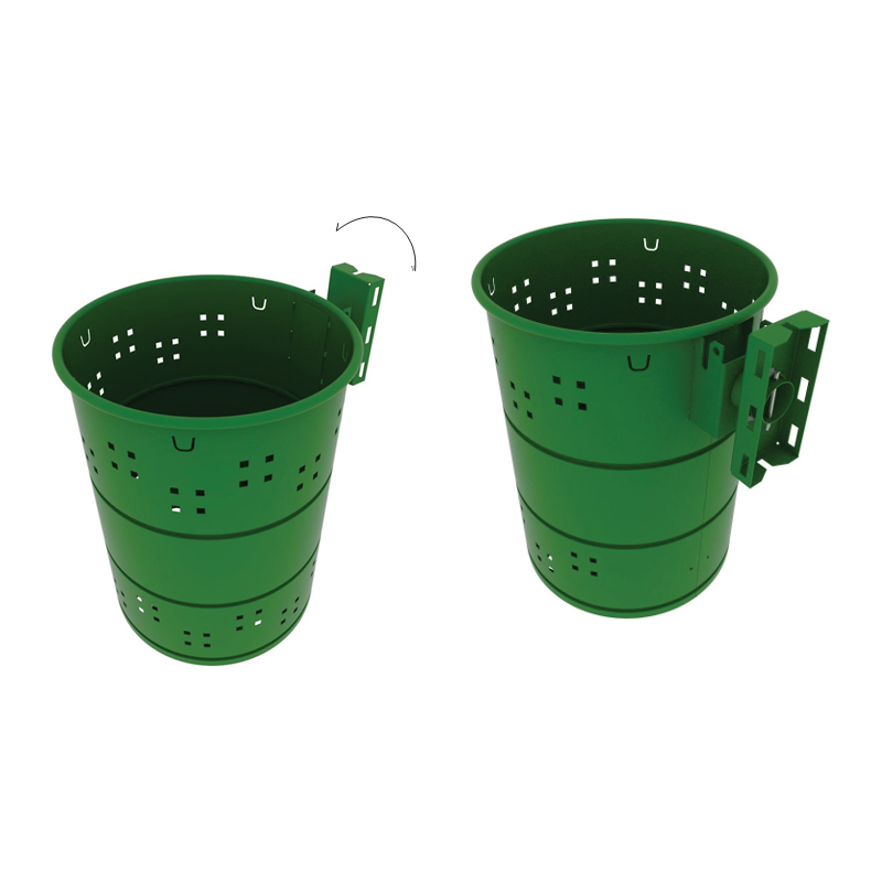 A solução prática e robusta para pontos de coleta de lixo em postes, com um design aberto para descarte rápido. Fabricada em aço pré-galvanizado com acabamento de alta durabilidade, esta lixeira de 50 litros possui um sistema basculante que agiliza e facilita o processo de esvaziamento.