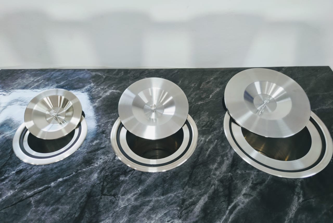 • Estética Minimalista: Ao ficar embutida na bancada, apenas a tampa fica visível, proporcionando um acabamento sofisticado e organizado, livre de lixeiras aparentes sobre a pia ou no chão.