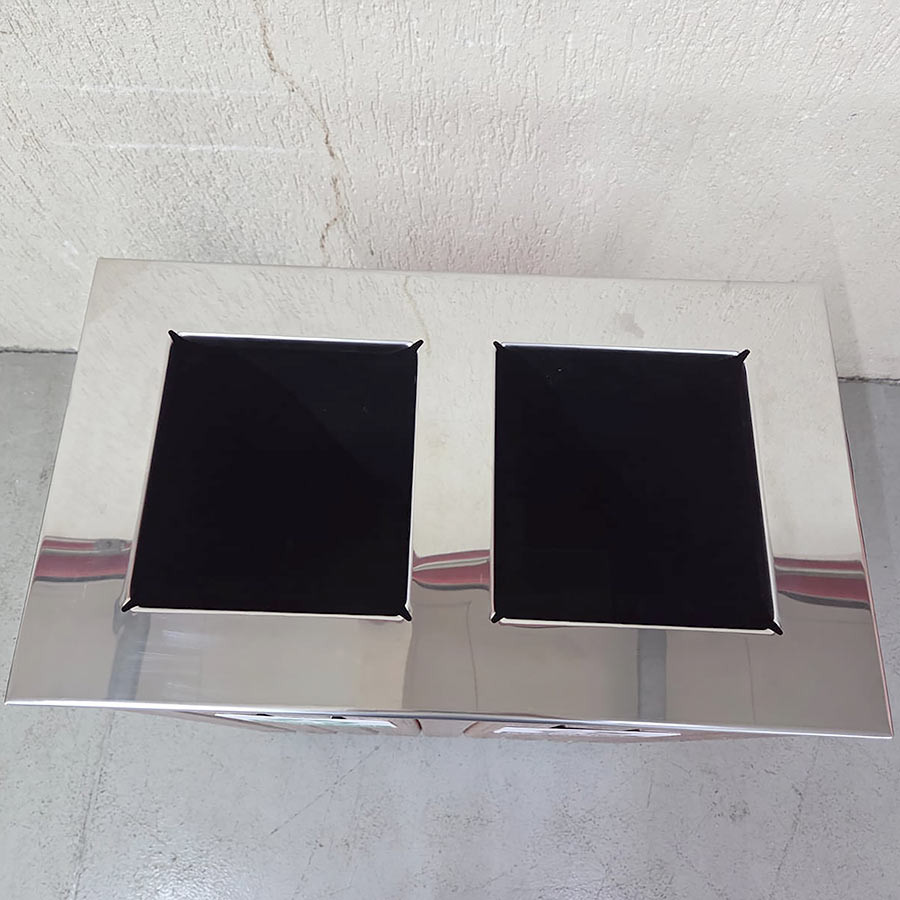 Lixeira Dupla em Madeira Cumaru Ripada com Tampa em Inox – Coleta Seletiva 100L