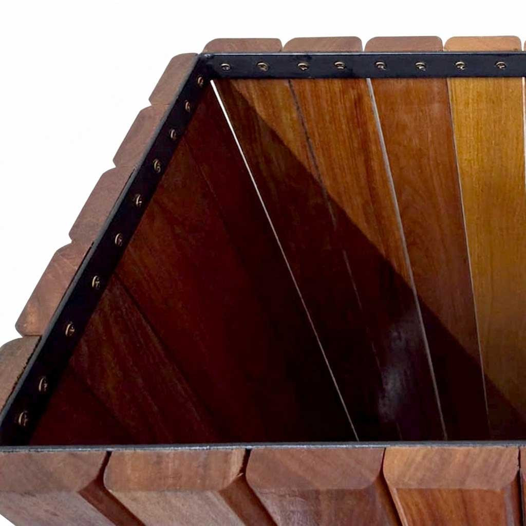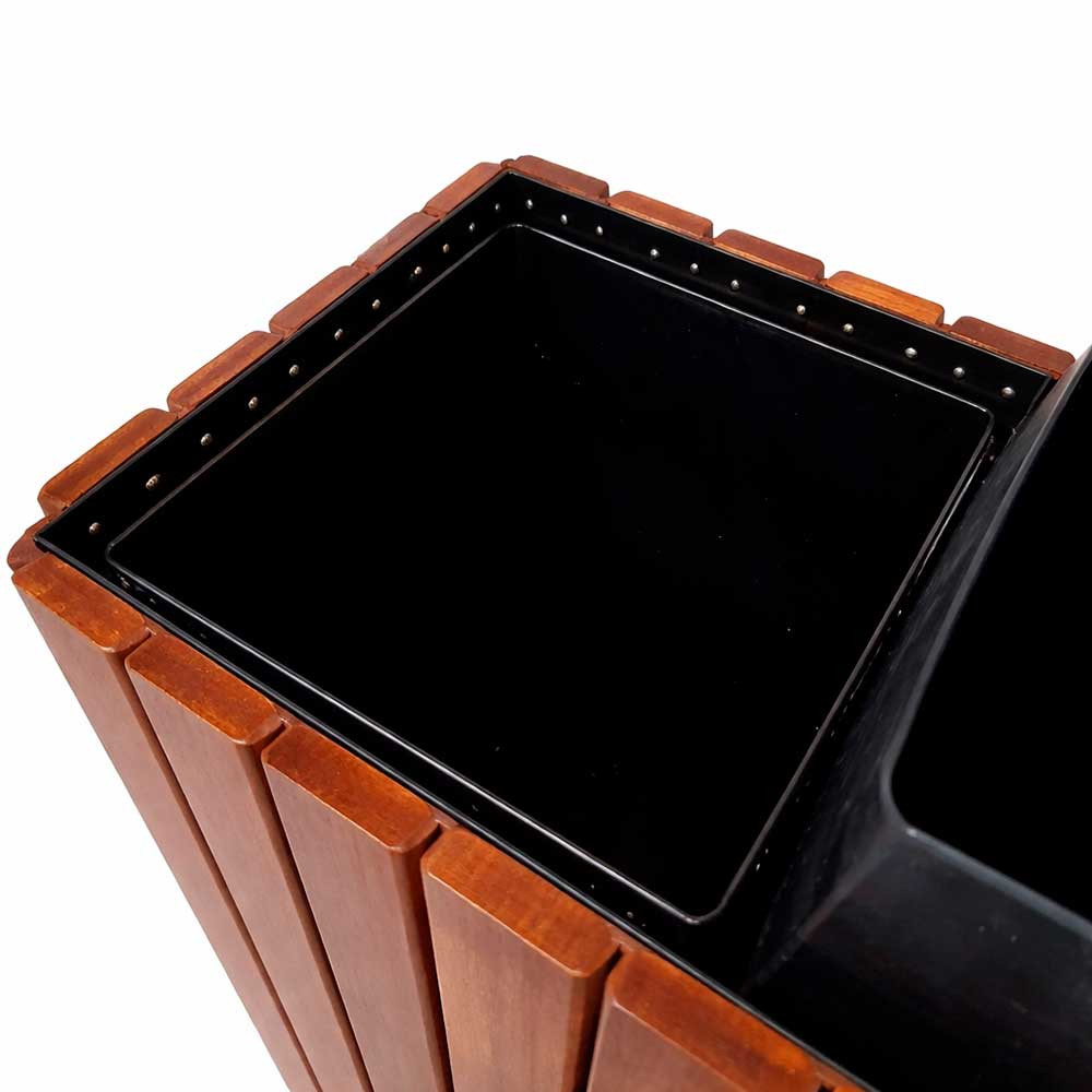 A união perfeita entre o design rústico sofisticado e a sustentabilidade. A Lixeira Dupla em Madeira Cumaru Ripada foi desenvolvida para ambientes de alto padrão que necessitam de um sistema de coleta seletiva eficiente, sem comprometer a estética e a elegância do local.