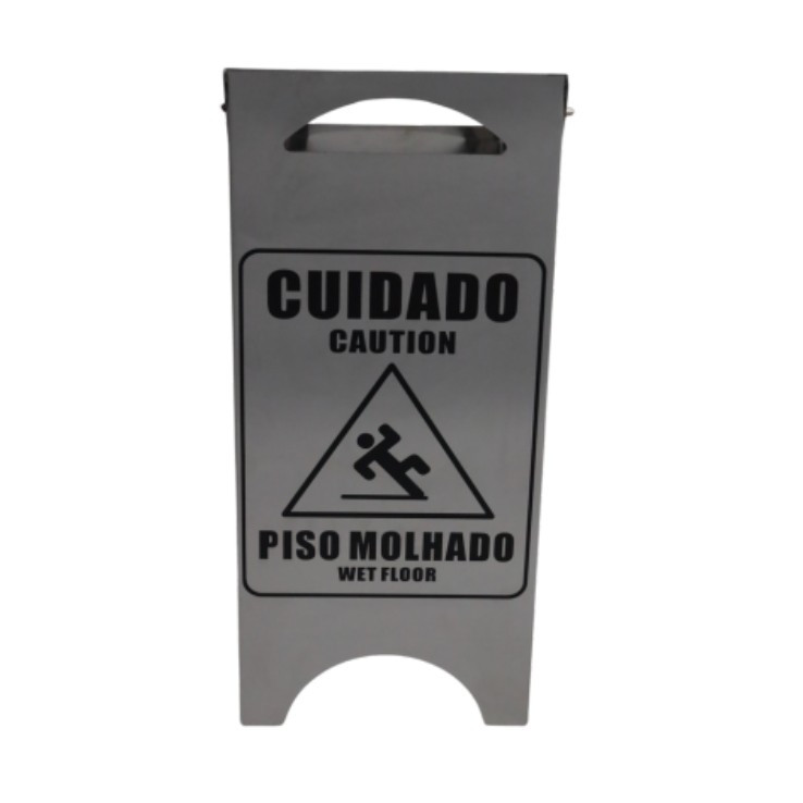 - Sinalização Bilíngue: Gravação “CUIDADO / CAUTION” e “PISO MOLHADO / WET FLOOR”, essencial para locais com fluxo de turistas ou executivos internacionais.